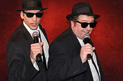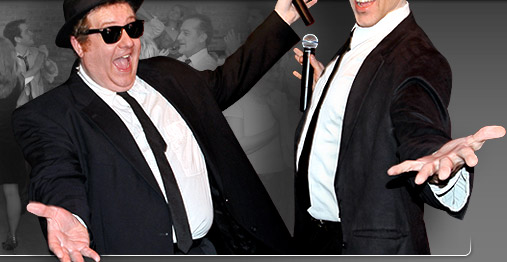 Our standard show is a fun 30 minute production with audience interaction and participation (including props) with interspersed performances of "Soul Man," "Sweet Home Chicago," "Gimme Some Lovin'," "Everybody Needs Some Body To Love," and "I Can't Turn You Loose." The music and dance routine can be sung with a live band (UpBeat R&B Machine) or sung along with a prerecorded CD. Jake and Elwood can also do a 'walk-a-round' and mingle with the guests before or after the 30 minute production.